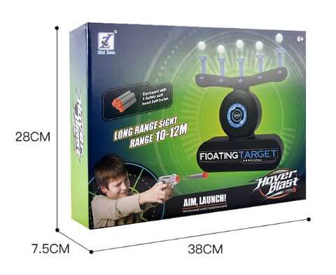A montagem é simples: coloque as cinco bolas sobre os pilares, ligue o jogo e as bolas serão suspensas em pleno ar! Depois compita para abater as bolas o mais rápido possível com os explosivos de dardos de espuma incluídos.