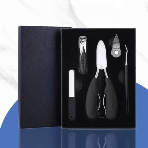 Especialmente projetadas para unhas espessadas e encravadas, as ferramentas deste conjunto oferecem a força e precisão necessárias para cuidados rigorosos com as unhas sem desconforto ou risco de lesão.