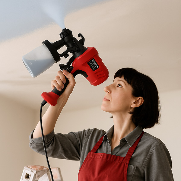 O bocal especial produz uma névoa fina de tinta que assenta uniformemente, sem riscos ou manchas. A ferramenta cria a sensação de que cada área se pinta sozinha “da maneira que deve”, independentemente do material, da experiência do utilizador ou da direção do movimento.
